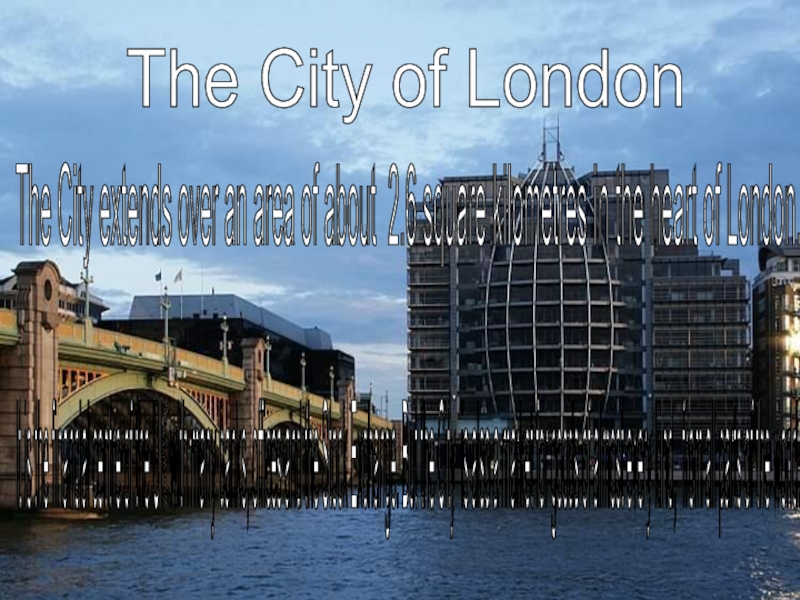 It is the financial centre of the UK with many banks, offices and the Stock Exchange. But the City is also a market for goods of almost every kind, from all parts of the world.