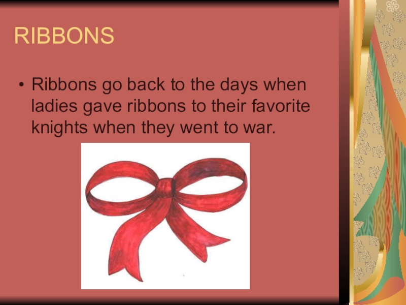 RIBBONSRibbons go back to the days when ladies gave ribbons to their favorite knights when they went