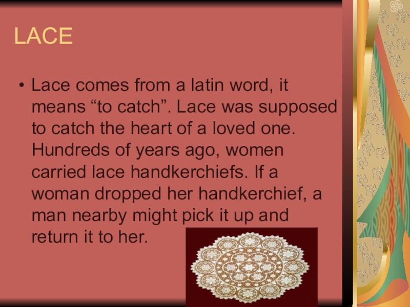 LACELace comes from a latin word, it means “to catch”. Lace was supposed to catch the heart
