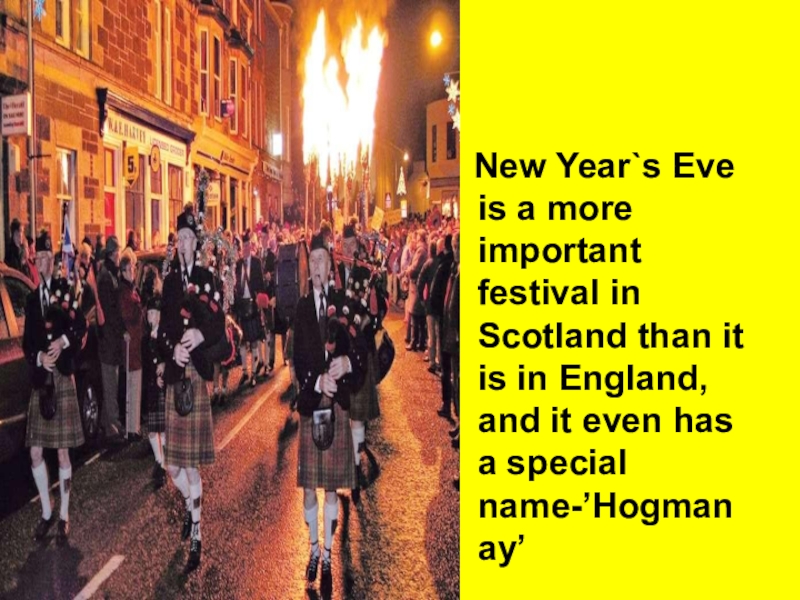 New Year`s Eve is a more important festival in Scotland than it is in England, and it even has a special name-’Hogmanay’