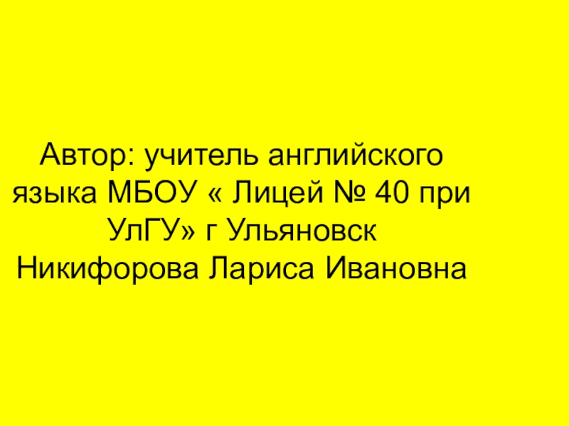 Автор: учитель английского языка МБОУ « Лицей № 40 при УлГУ» г Ульяновск Никифорова Лариса Ивановна
