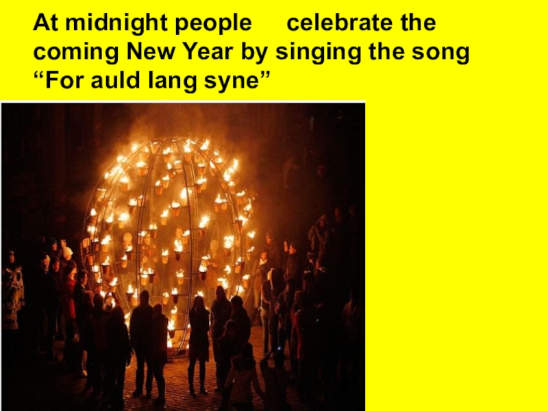 At midnight people   celebrate the coming New Year by singing the song “For auld lang