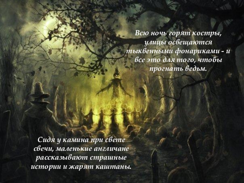 Сидя у камина при свете свечи, маленькие англичане рассказывают страшные истории и жарят каштаны.