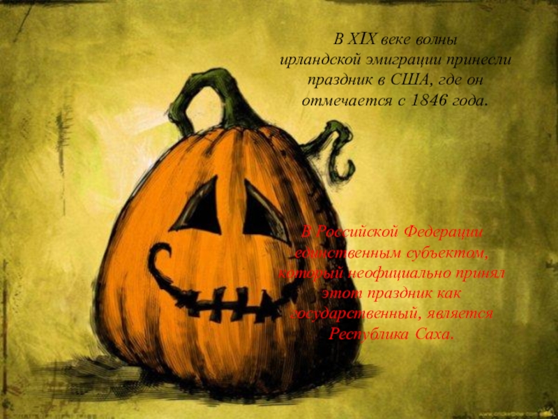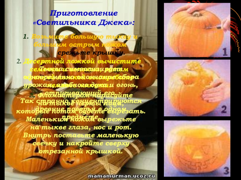 Тыква символизирует одновременно окончание сбора урожая, злобного духа и огонь, отпугивающий его.