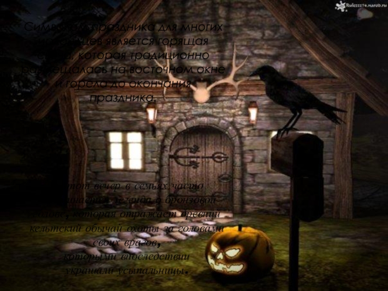 В этот вечер в семьях часто вспоминается легенда о бронзовой голове, которая отражает древний кельтский обычай охоты за головами своих врагов,