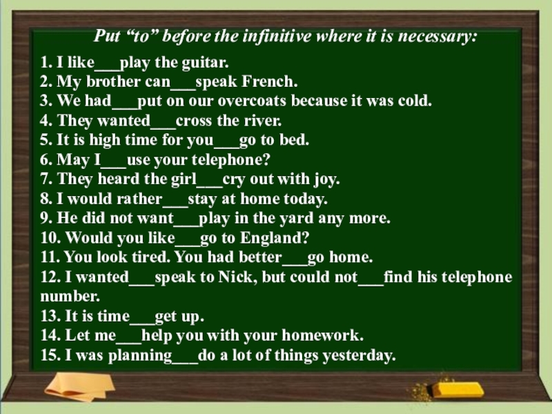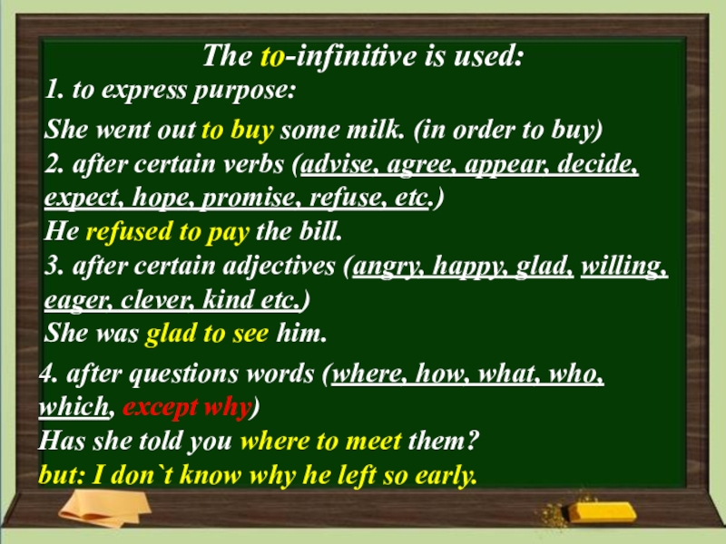 2. after certain verbs (advise, agree, appear, decide, expect, hope, promise, refuse, etc.)