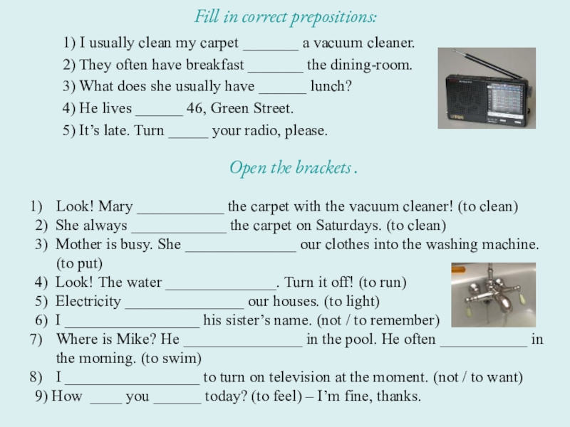 4) Look! The water ______________. Turn it off! (to run)