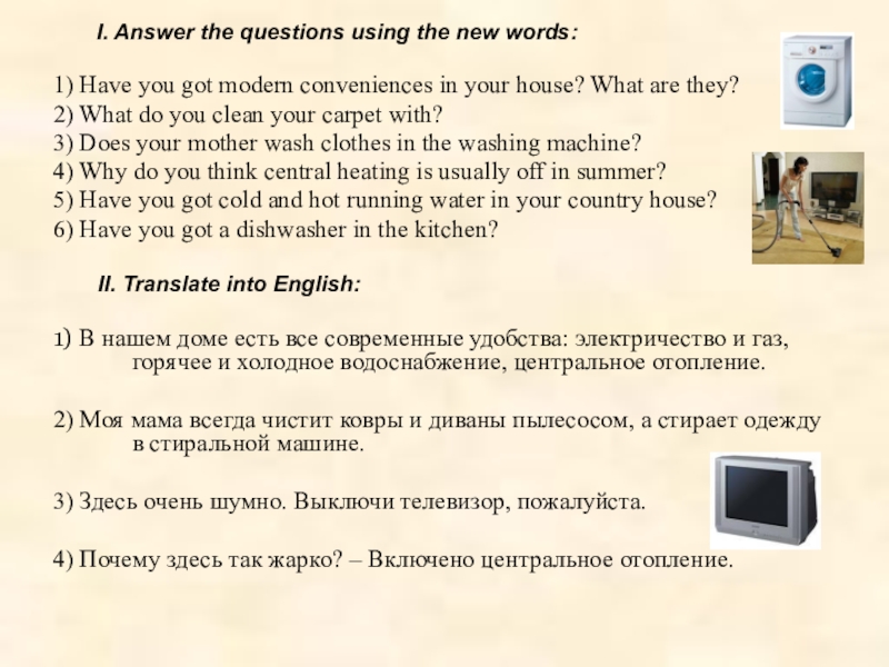 3) Mother is busy. She ______________ our clothes into the washing machine. (to put)