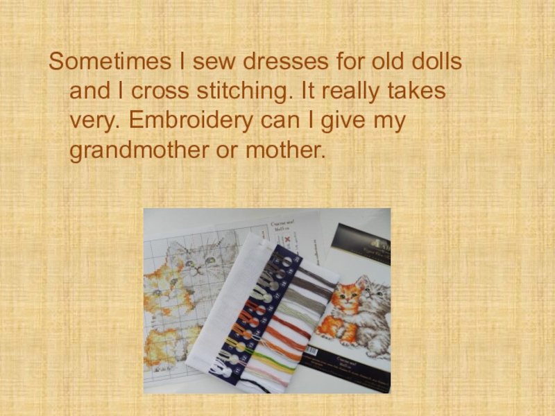 Слайд 4Sometimes I sew dresses for old dolls and I cross stitching.