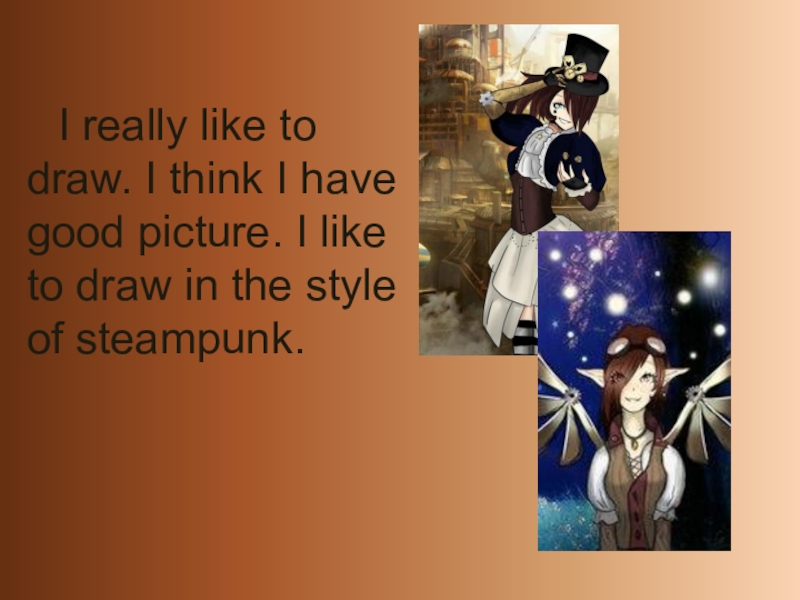 I really like to draw. I think I have good picture. I like to draw in the style of steampunk.
