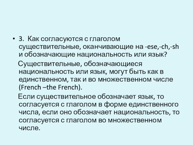 Слайд 43. Как согласуются с глаголом существительные, оканчивающие на -ese,-ch,-sh и обозначающие