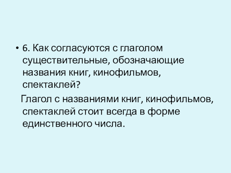 Слайд 76. Как согласуются с глаголом существительные, обозначающие названия книг, кинофильмов, спектаклей?