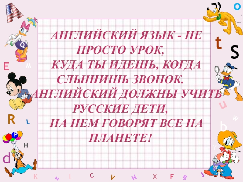 WCSbdEYgHJKMLFoPQtuRzlVxNАнглийский язык - не просто урок,Куда ты идешь, когда слышишь звонок.Английский должны учить русские дети,На нем говорят все на планете!