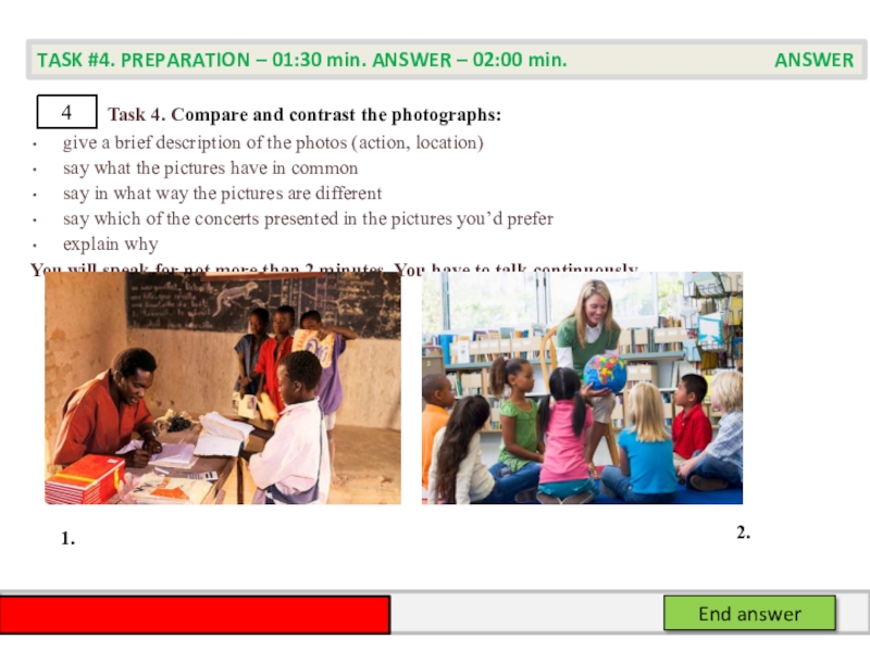 TASK #4. PREPARATION – 01:30 min. ANSWER – 02:00 min. PREPARATION