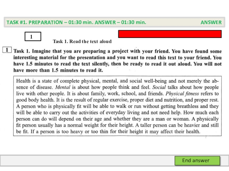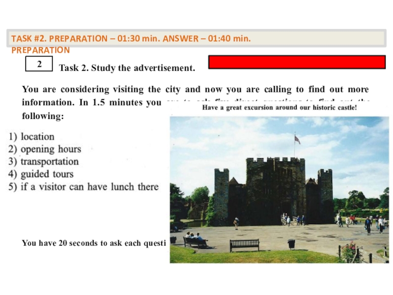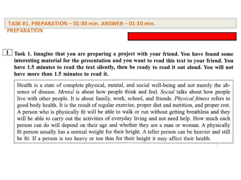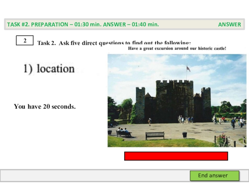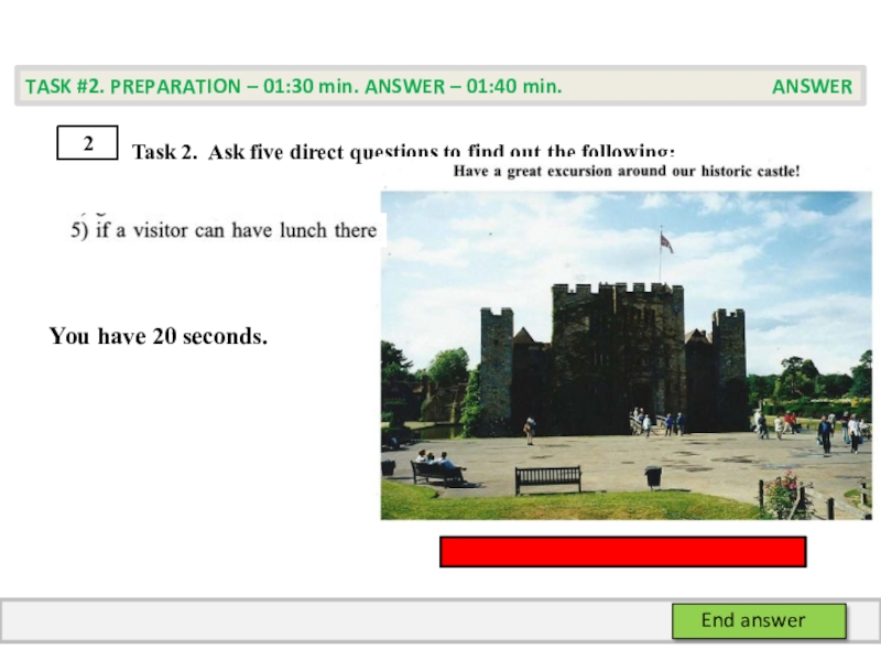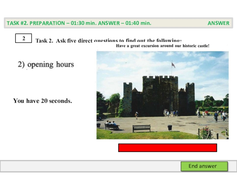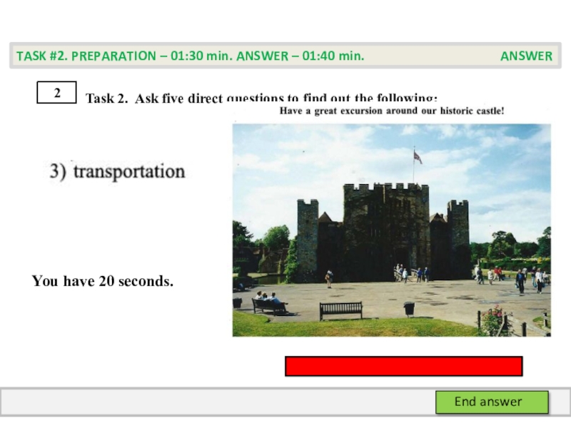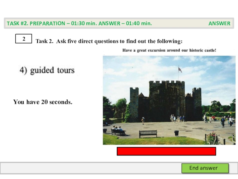 TASK #2. PREPARATION – 01:30 min. ANSWER – 01:40 min. PREPARATION