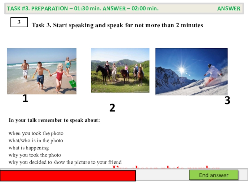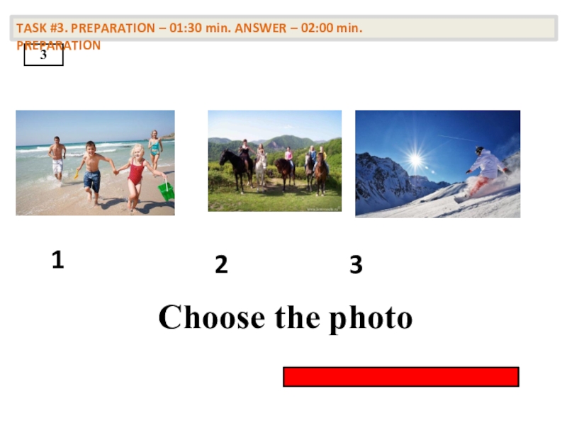 TASK #3. PREPARATION – 01:30 min. ANSWER – 02:00 min. PREPARATION