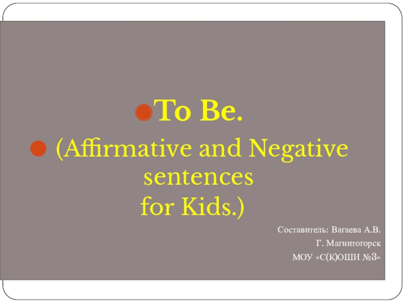 To Be. (Affirmative and Negative sentences for Kids.)Составитель: Вагаева А.В.Г. Магнитогорск МОУ «С(К)ОШИ №3»