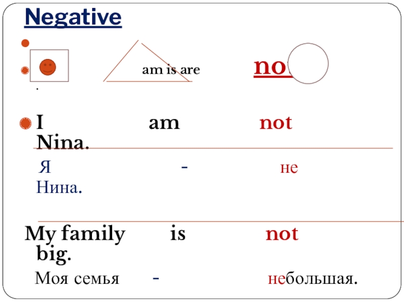 Презентация, доклад по английскому языку Положительные и отрицательные предложения с to be