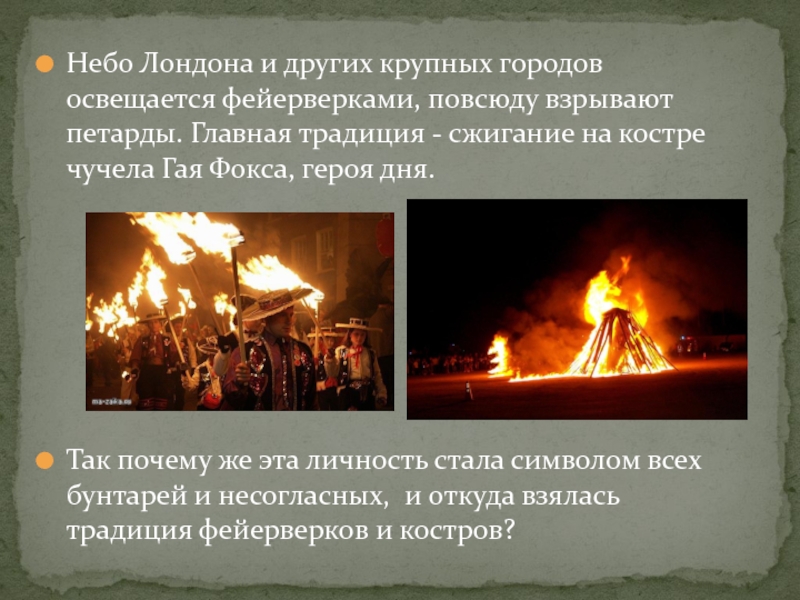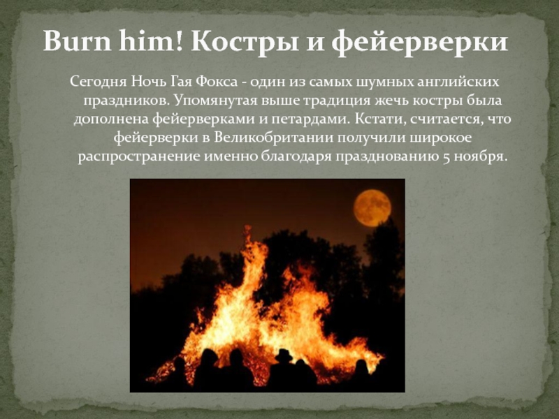 Слайд 15Сегодня Ночь Гая Фокса - один из самых шумных английских праздников.