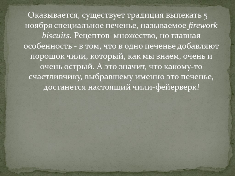 Слайд 21Оказывается, существует традиция выпекать 5 ноября специальное печенье, называемое firework biscuits. Рецептов