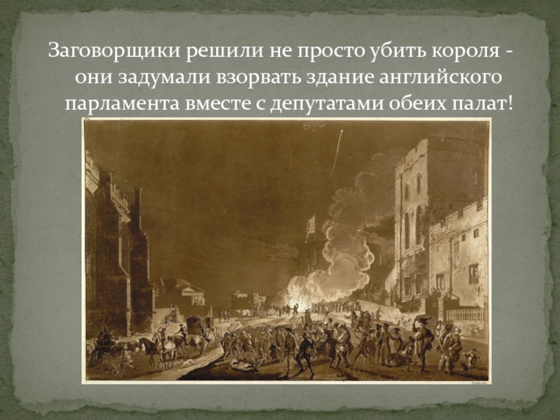 Слайд 5Заговорщики решили не просто убить короля - они задумали взорвать здание