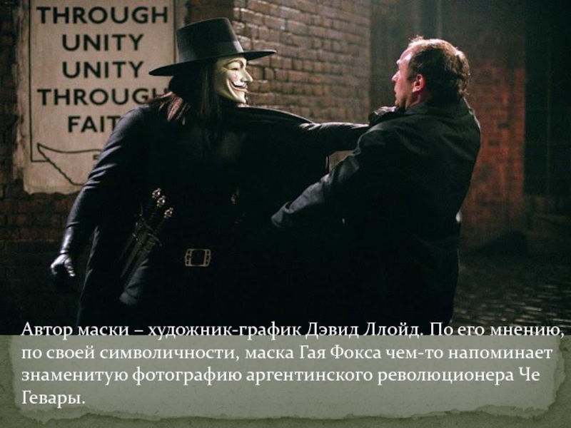 Слайд 25Автор маски – художник-график Дэвид Ллойд. По его мнению, по своей