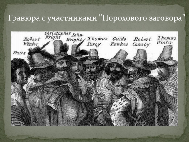 Слайд 4Гравюра с участниками "Порохового заговора"