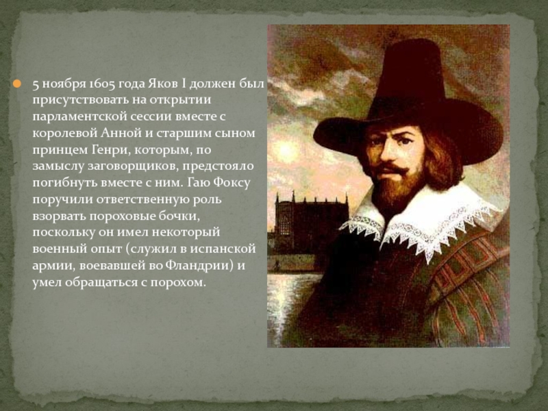 Слайд 65 ноября 1605 года Яков I должен был присутствовать на открытии парламентской