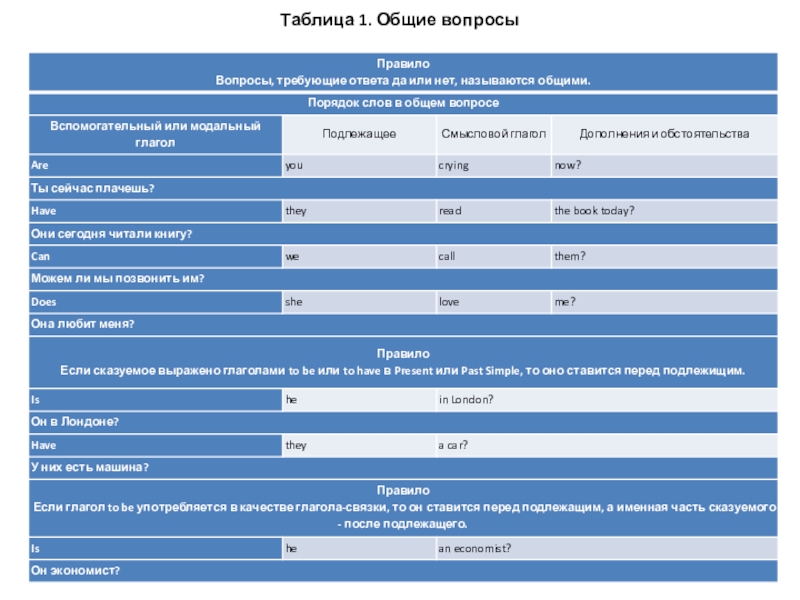 Слайд 2Таблица 1. Общие вопросы
