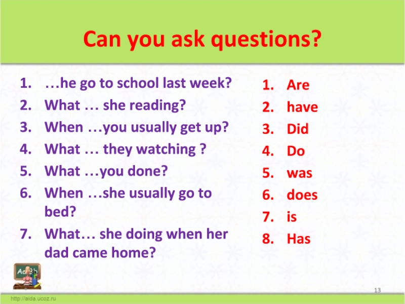 6. She (do) her home exercise yesterday.