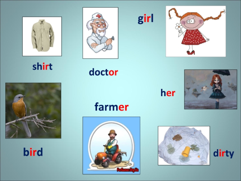 Презентация, доклад по английскому языку правило чтения буквосочетаний -ir- / -er- под ударением и в безударном положении