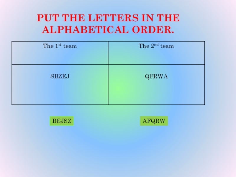 Слайд 5PUT THE LETTERS IN THE ALPHABETICAL ORDER.