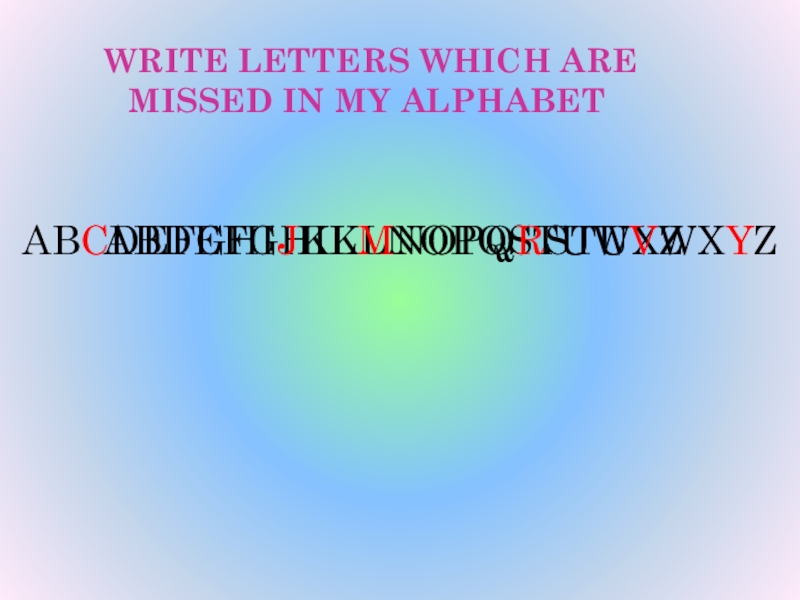 Слайд 4 WRITE LETTERS WHICH ARE MISSED IN MY ALPHABET