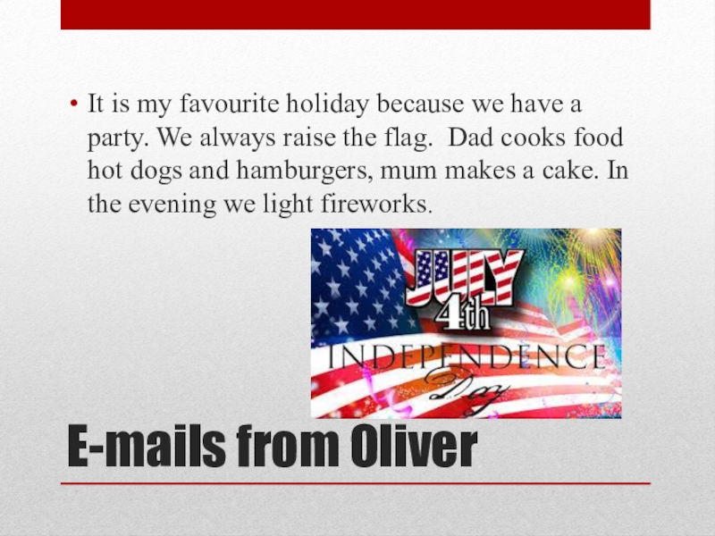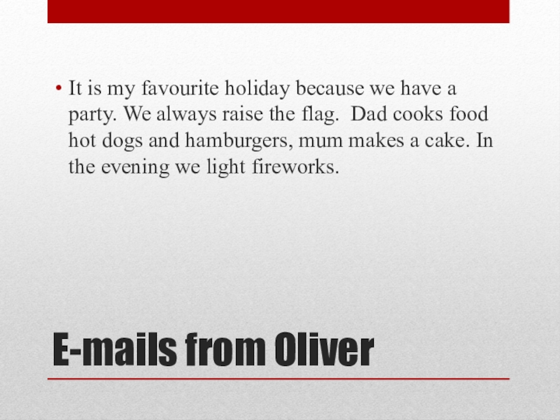 E-mails from OliverIt is my favourite holiday because we have a party. We always raise the flag.