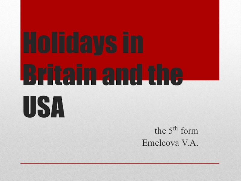 Holidays in Britain and the USAthe 5th formEmelcova V.A.
