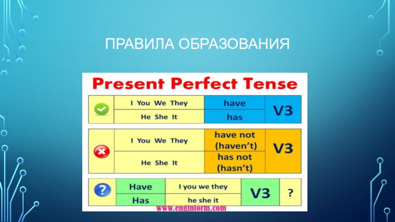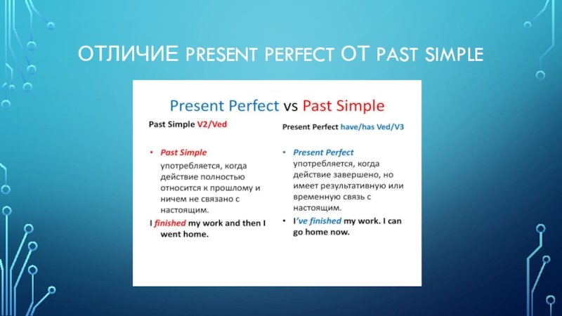 Что обозначает present perfect Мы используем Present Perfect, чтобы сказать, что событие произошло в неопределенный момент в прошлом. То есть мы не называем, когда именно это произошло. Мы говорим только, что это было в прошлом. Называть конкретное