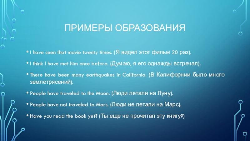Примеры образованияI have seen that movie twenty times. (Я видел этот фильм 20 раз).I think I have