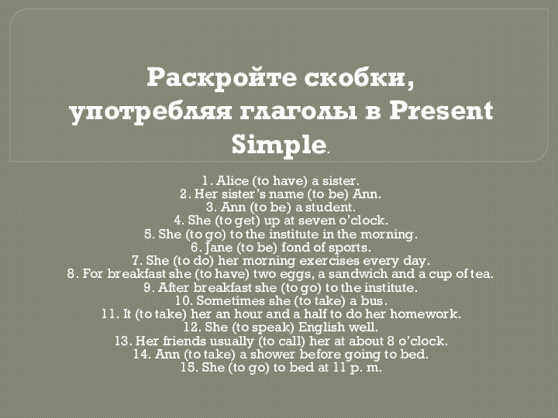 Раскройте скобки, употребляя глаголы в Present Simple.