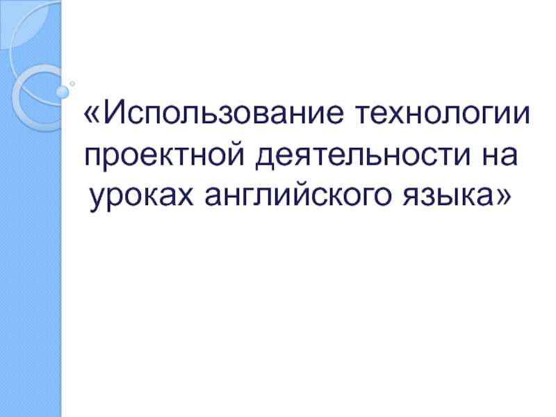 Слайд 1 «Использование технологии проектной деятельности на уроках английского языка»