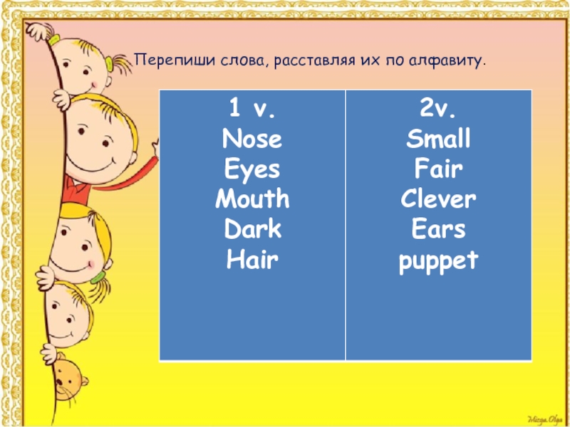 Слайд 2Перепиши слова, расставляя их по алфавиту.