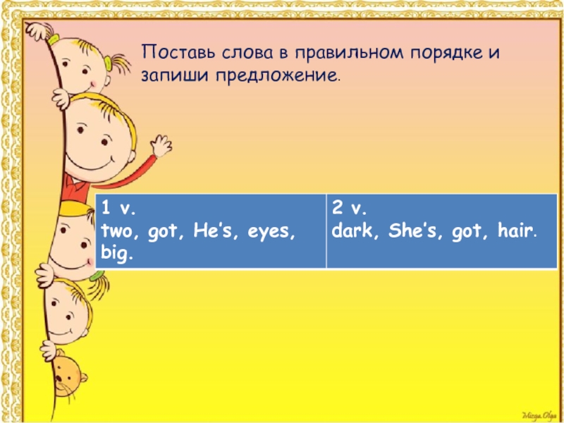 Слайд 5Поставь слова в правильном порядке и запиши предложение.