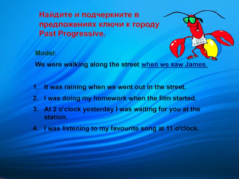 Найдите и подчеркните в предложениях ключи к городу Past Progressive.