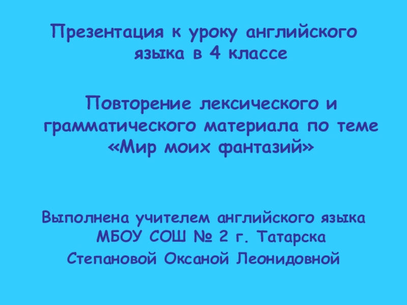 Выполнена учителем английского языка МБОУ СОШ № 2 г. Татарска