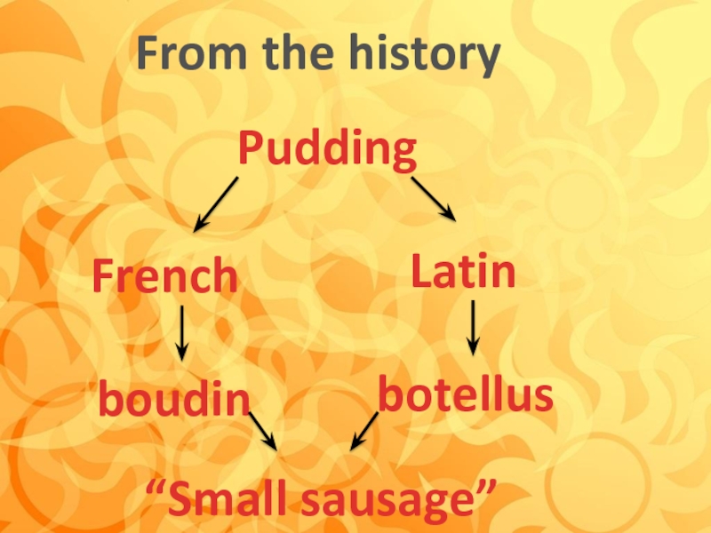 From the historyPuddingFrenchLatinboudinbotellus“Small sausage”