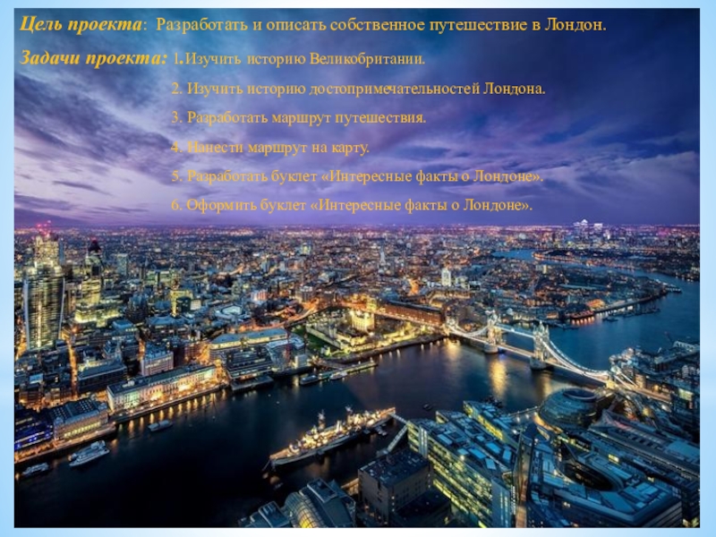 Слайд 3Цель проекта: Разработать и описать собственное путешествие в Лондон.