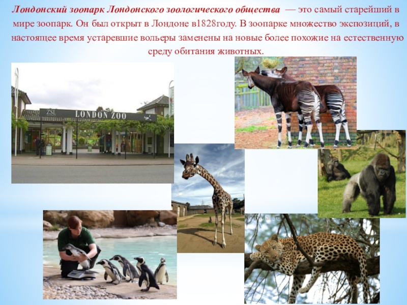 Слайд 24Лондонский зоопарк Лондонского зоологического общества — это самый старейший в мире