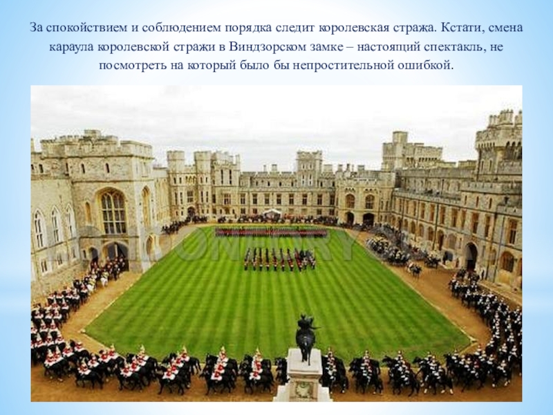Слайд 38За спокойствием и соблюдением порядка следит королевская стража. Кстати, смена караула