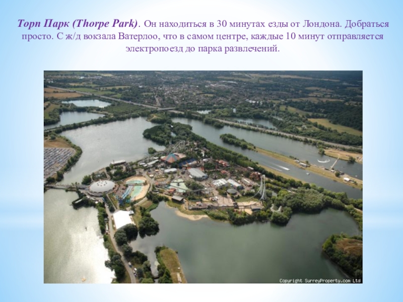 Слайд 39Торп Парк (Thorpe Park). Он находиться в 30 минутах езды от