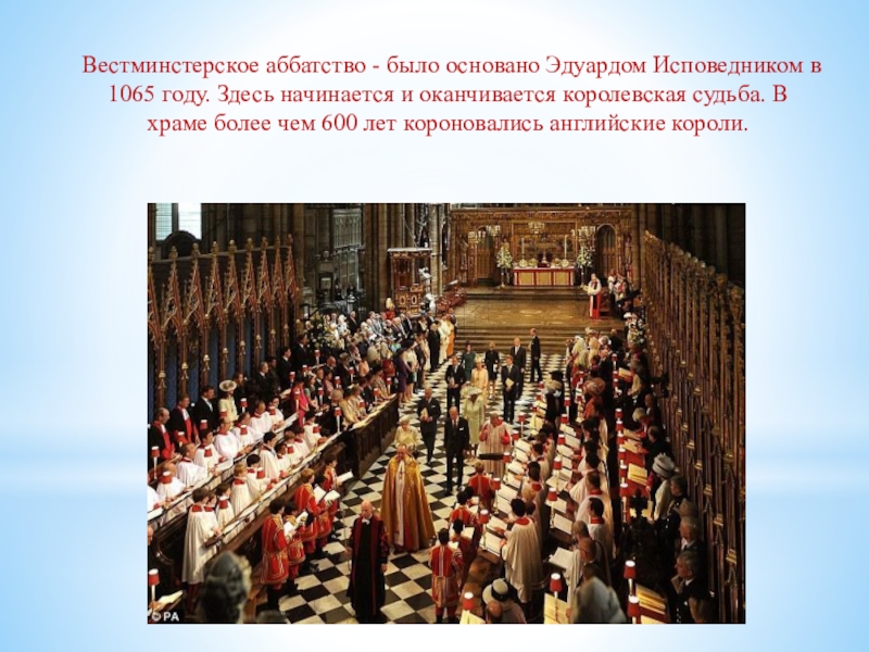 Слайд 11Вестминстерское аббатство - было основано Эдуардом Исповедником в 1065 году. Здесь