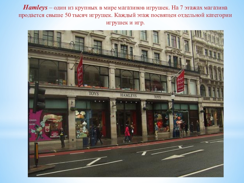 Слайд 30Hamleys – один из крупных в мире магазинов игрушек. На 7